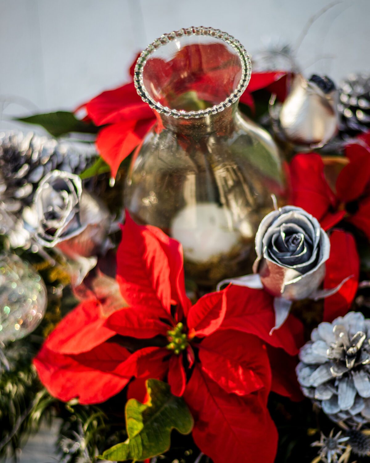 Centro de mesa redondo con florero para velas