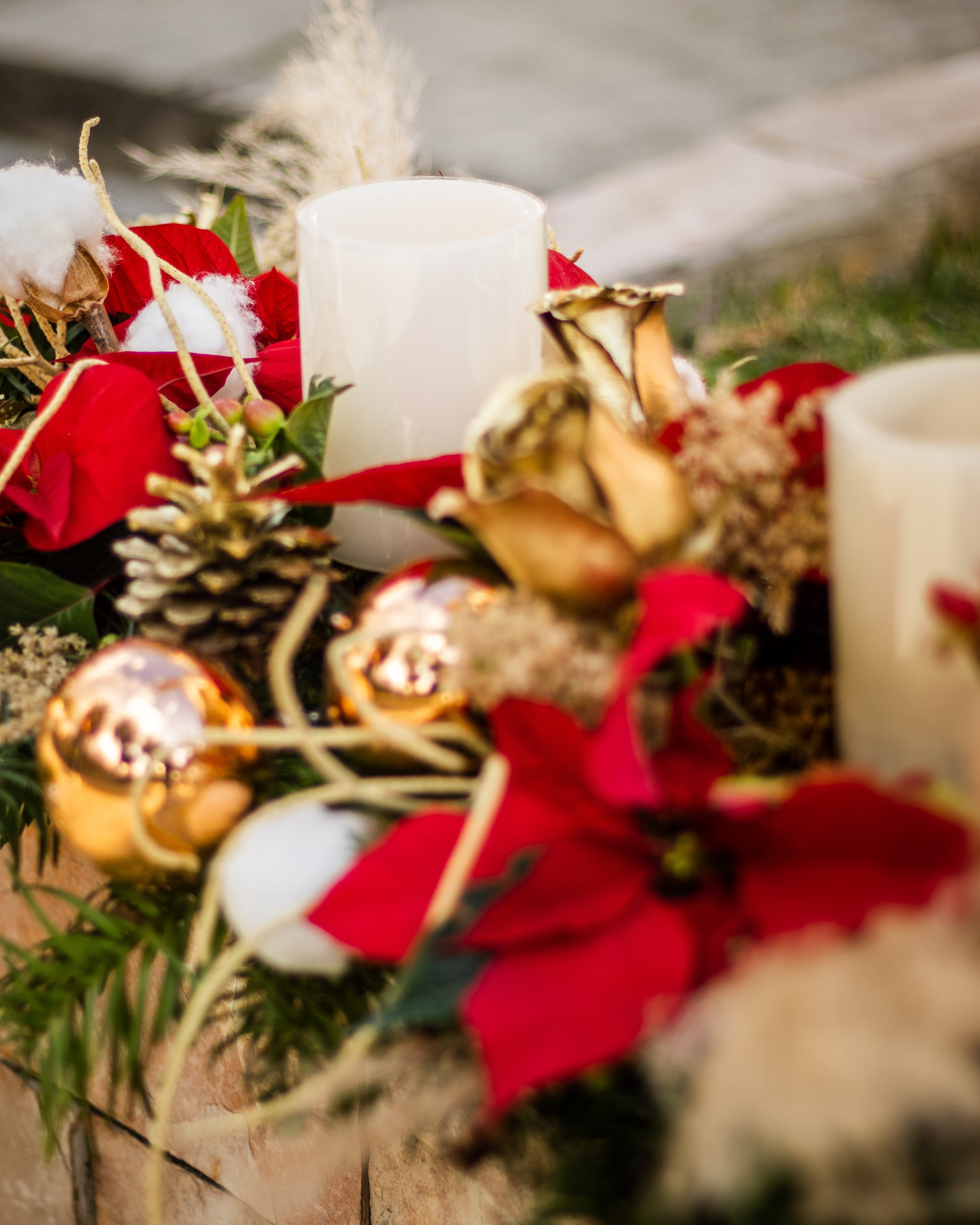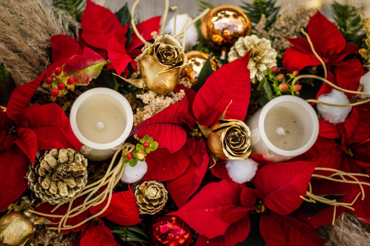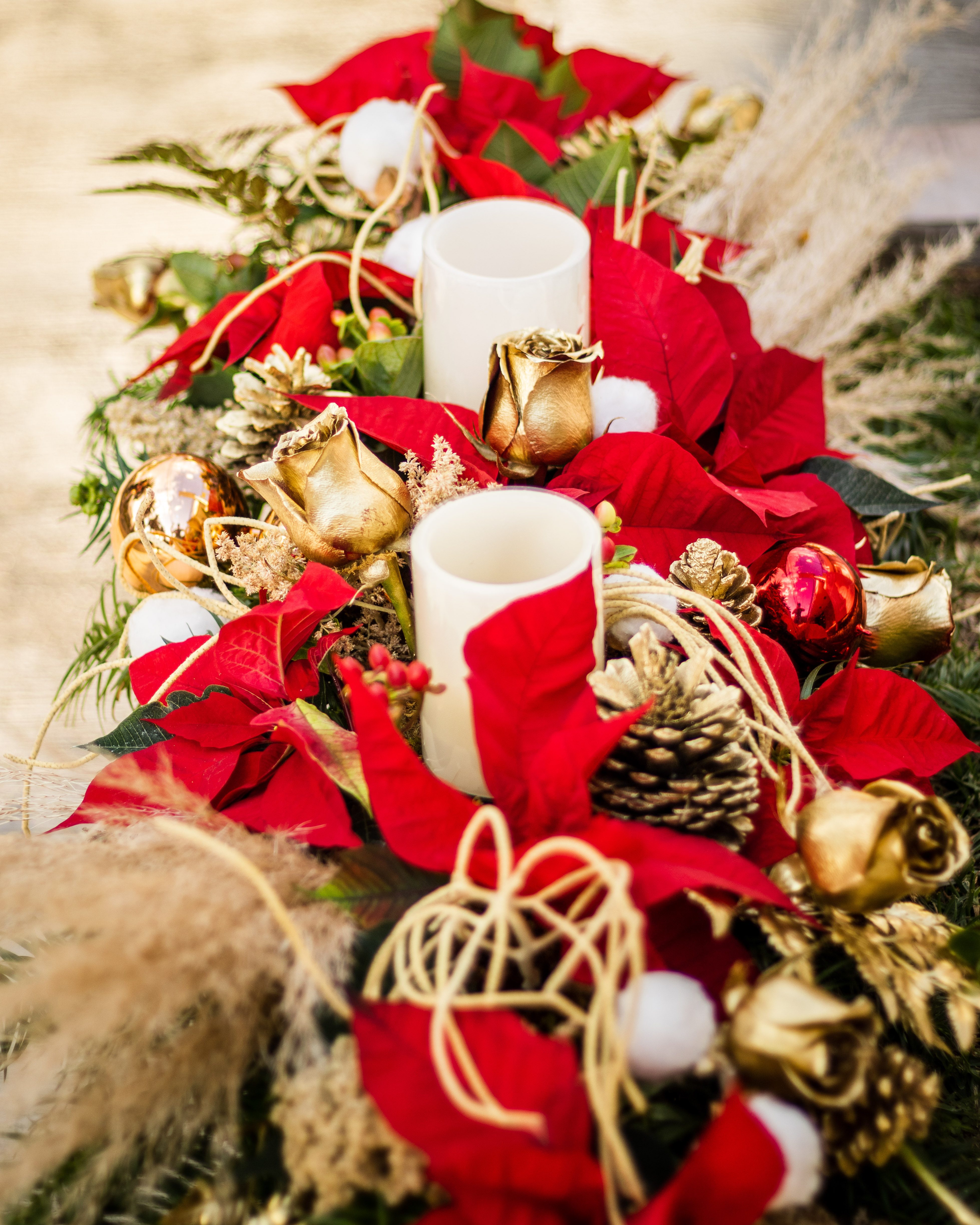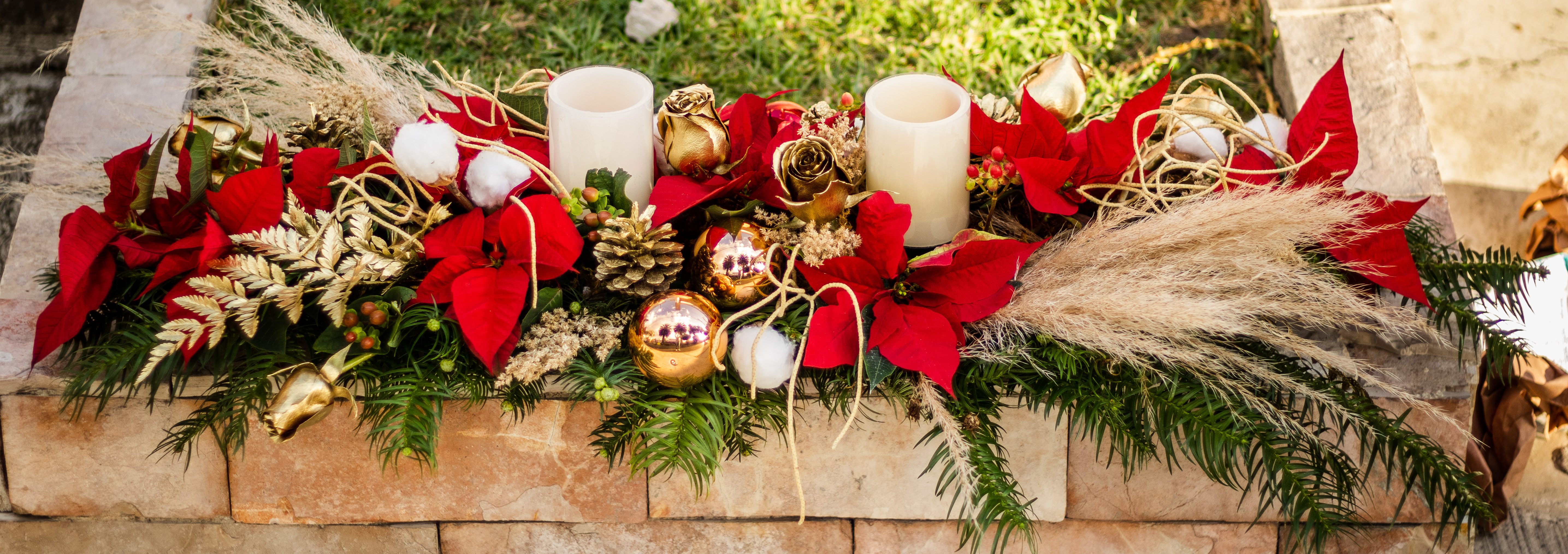 Centro de mesa Alargado navideño con dos velas artificiales