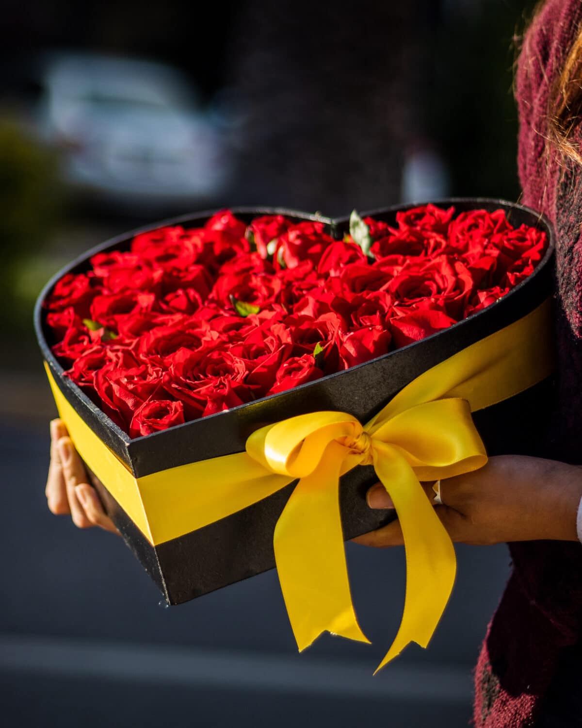 Base de madera en forma de corazón con rosas